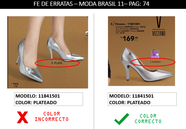 Se adjunta el color correcto del modelo 11841501 del catálogo MODA BRASIL 11 en la pagina 74.