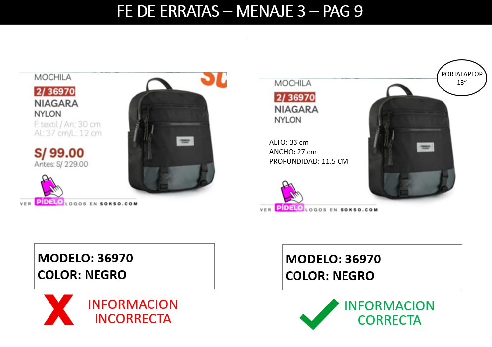 Se adjunta la aclaración sobre el modelo 36970 en sus medidas.
