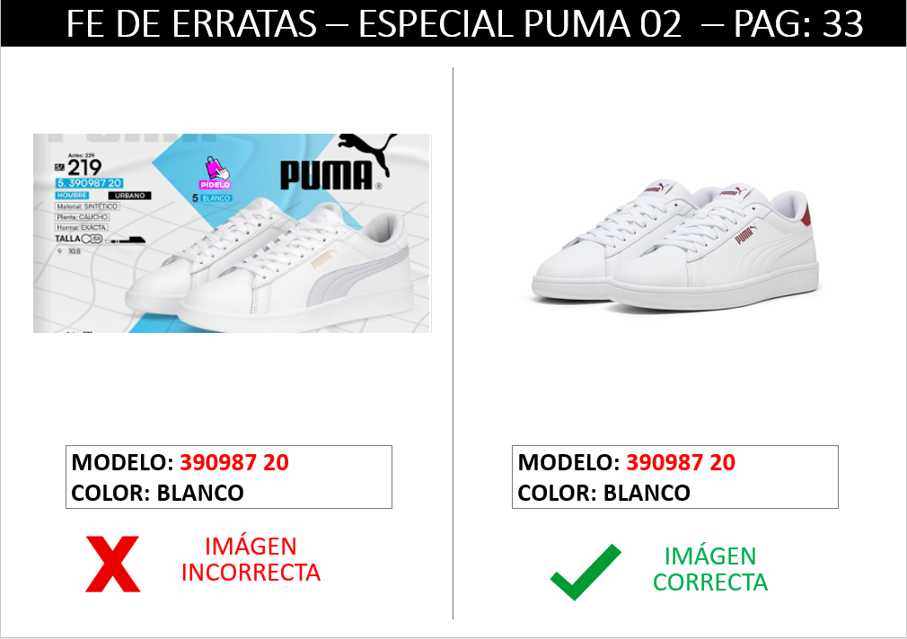 La imagen correcta del modelo 390987 20 BLANCO del catálogo ESP PUMA 02 es el que se encuentra en la plataforma SMART.