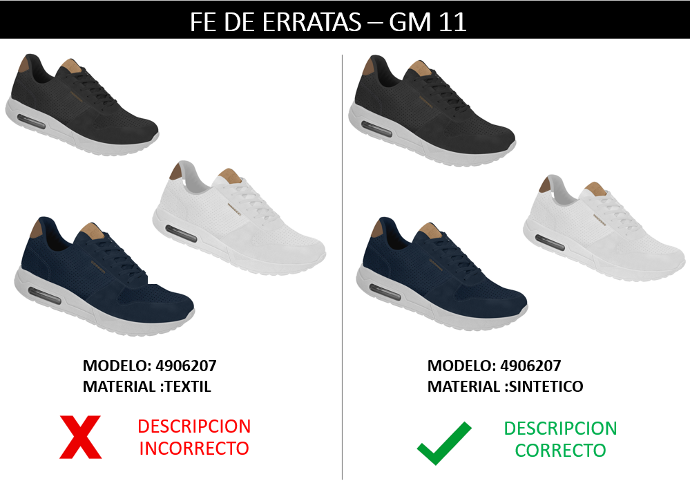 Se envía FE DE ERRATAS del modelo ACTVITTA 4906207 por error en la descripción del material .