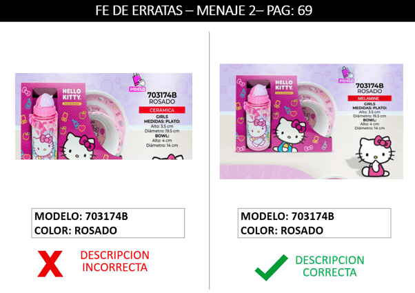 Se adjunta el fe de erratas de la descripción del modelo 703174B del catalogo de MENAJE 2.