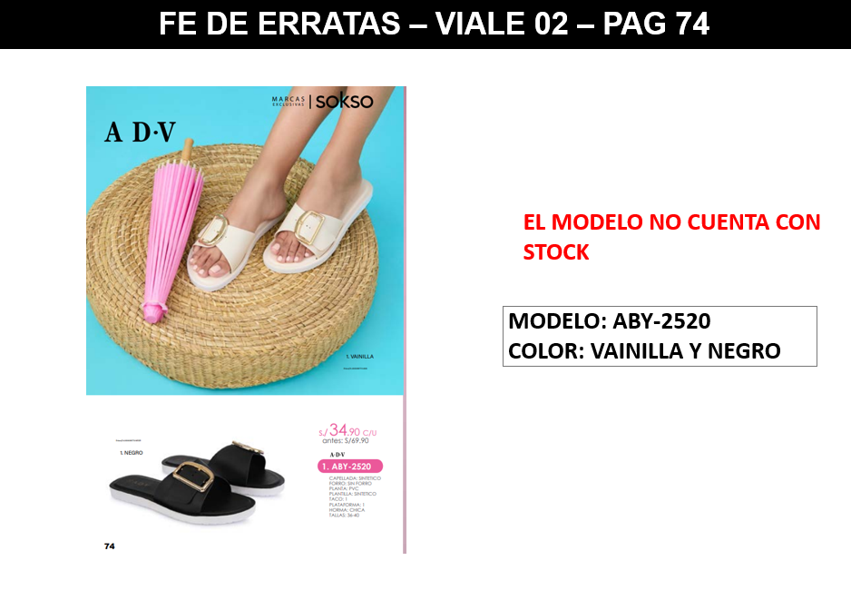 EL MODELO ABY-2520, EN COLOR VAINILLA Y NEGRO, NO CUENTA CON STOCK DEBIDO A TEMAS DE CALIDAD DEL PROVEEDOR.