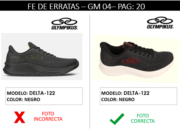 Se adjunta Fe de erratas por error del foto del modelo DELTA-122 en color Negro.