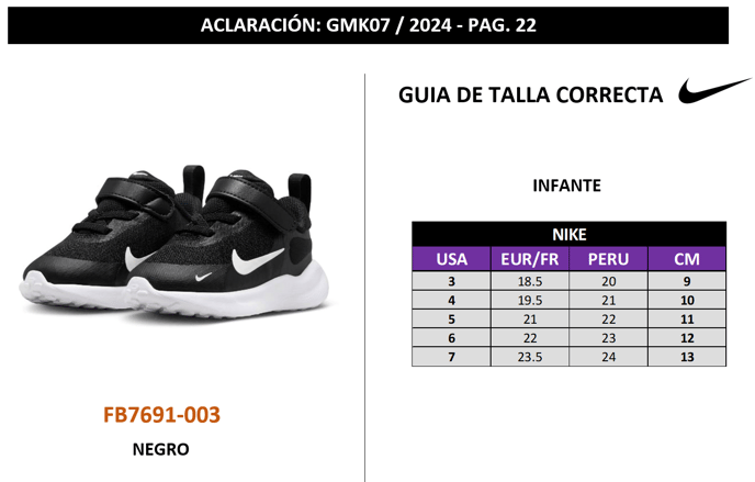 Se adjunta Guía de tallas del modelo NIKE FB7691-003