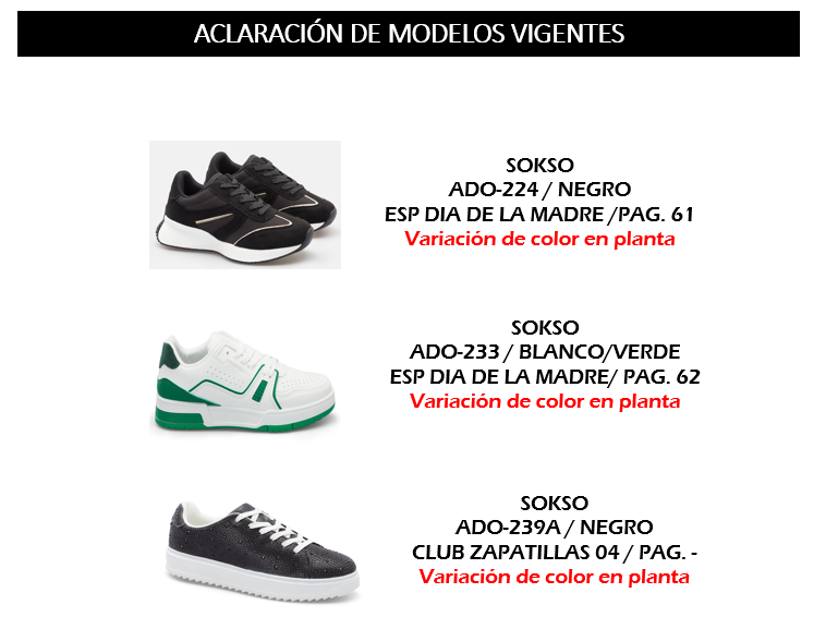 FE DE ERRATAS| SOKSO| ADO-224| ADO-233| ADO-239A| ESP. DÍA DE LA MADRE| CLUB ZAPATILLAS 04