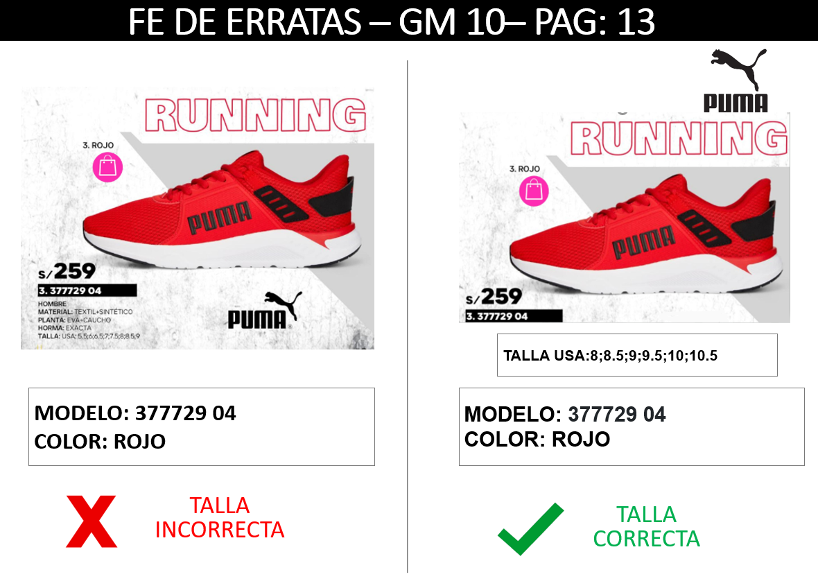 Se adjunta el FE DE ERRATAS del modelo PUMA 377729 04 en color rojo .