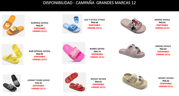 Se muestra la disponibilidad de ingreso de los siguientes modelos del GRANDES MARCAS 12 .