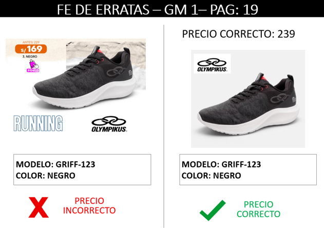 Se adjunta la Fe de erratas debido a un error en el precio del modelo GRIFF-123 en color negro.