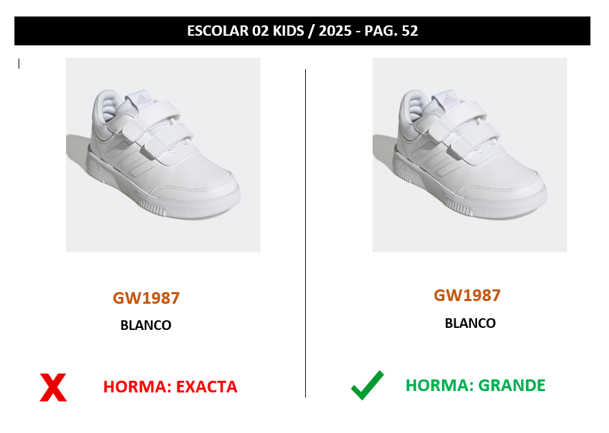 Se envía el fe de erratas con la horma correcta del modelo GW1987 color BLANCO