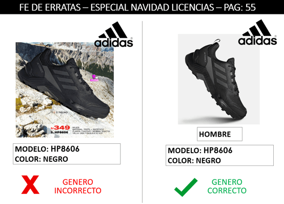 Se envía FE DE ERRATAS por error de Genero del modelo ADIDAS HP8606.