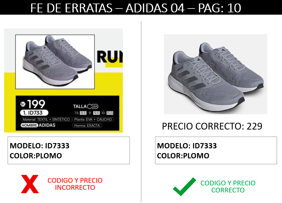 Se adjunta un fe de erratas por error de precio y código del modelo ADIDAS ID7333.