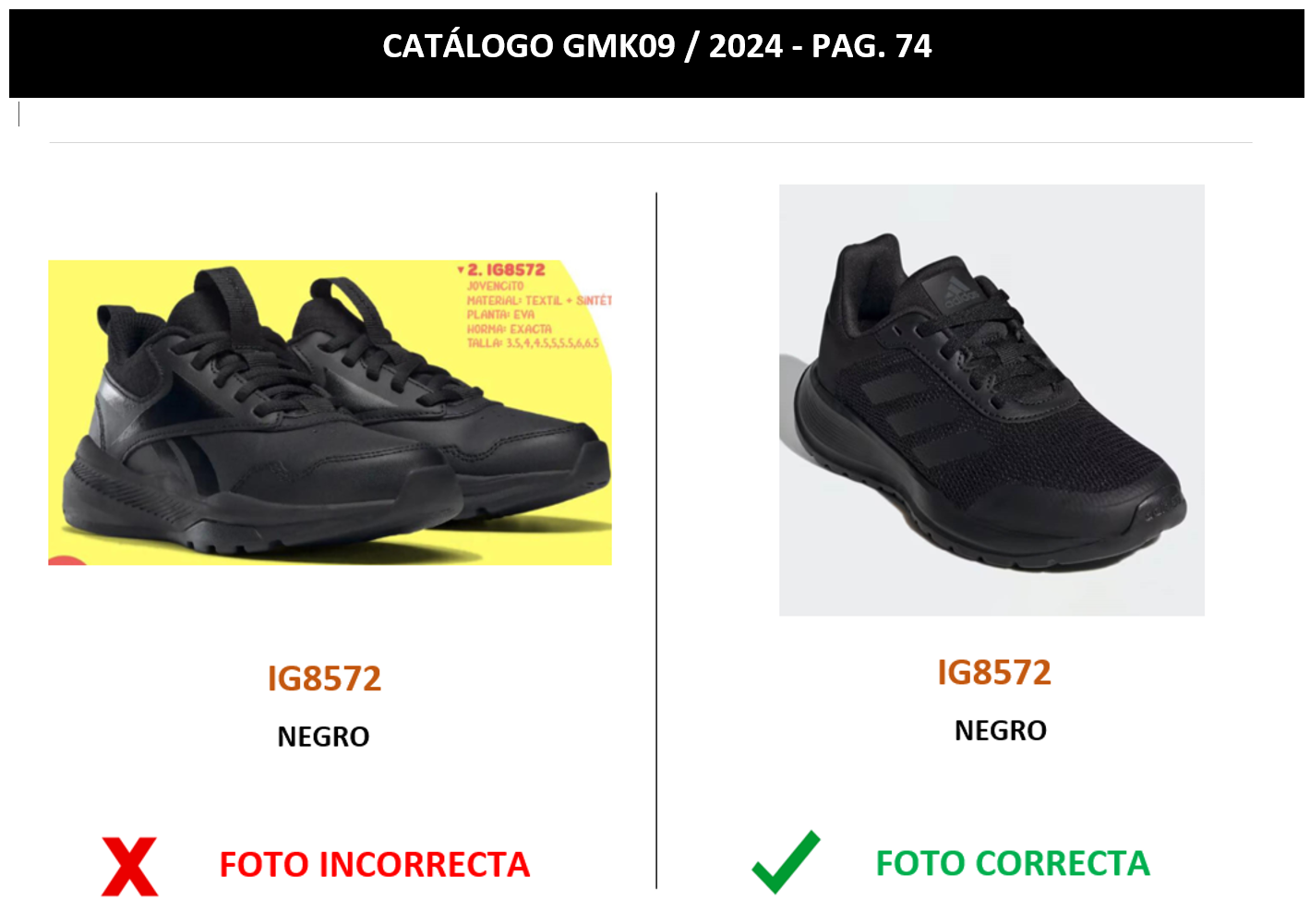Se adjunta el Fe de erratas indicando la foto correcta del modelo ADIDAS IG8572 color NEGRO.