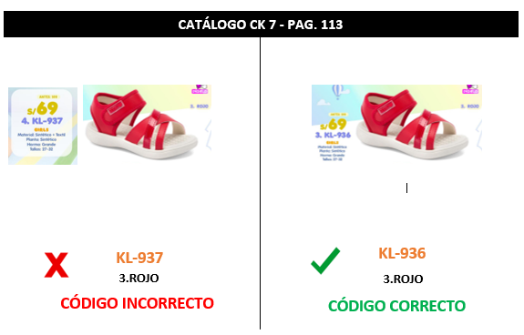 Se adjunta el Fe de erratas indicando el CÓDIGO correcto del modelo KL-936 color ROJO.