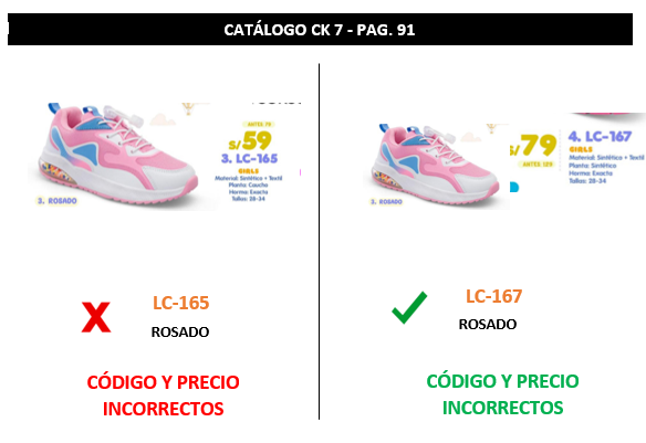 Se adjunta el Fe de erratas indicando el CÓDIGO Y PRECIO correctos del modelo LC-167 color ROSADO.