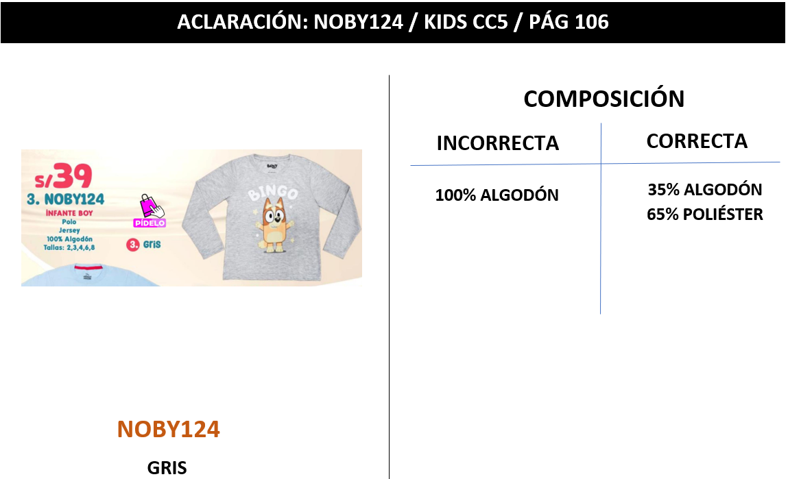 Se hace el envío de la aclaración del modelo NOBY124 de color GRIS del catálogo KIDS CK5