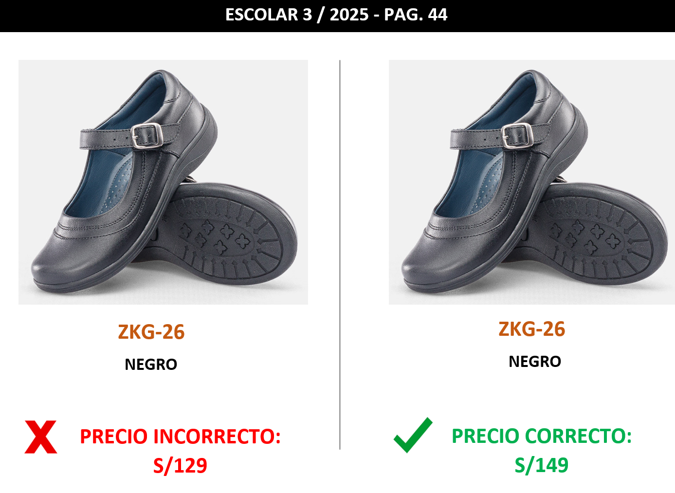 Se está corrigiendo el precio del modelo ZKG-26 NEGRO de la marca JACK AND JACKIE.