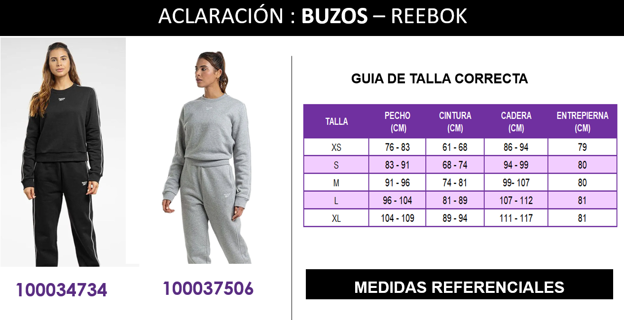 100037506 || 100034734 || ROUTT 06 || GUIA DE TALLAS Se adjunta la Guía de tallas de los Buzos de la Marca REEBOK