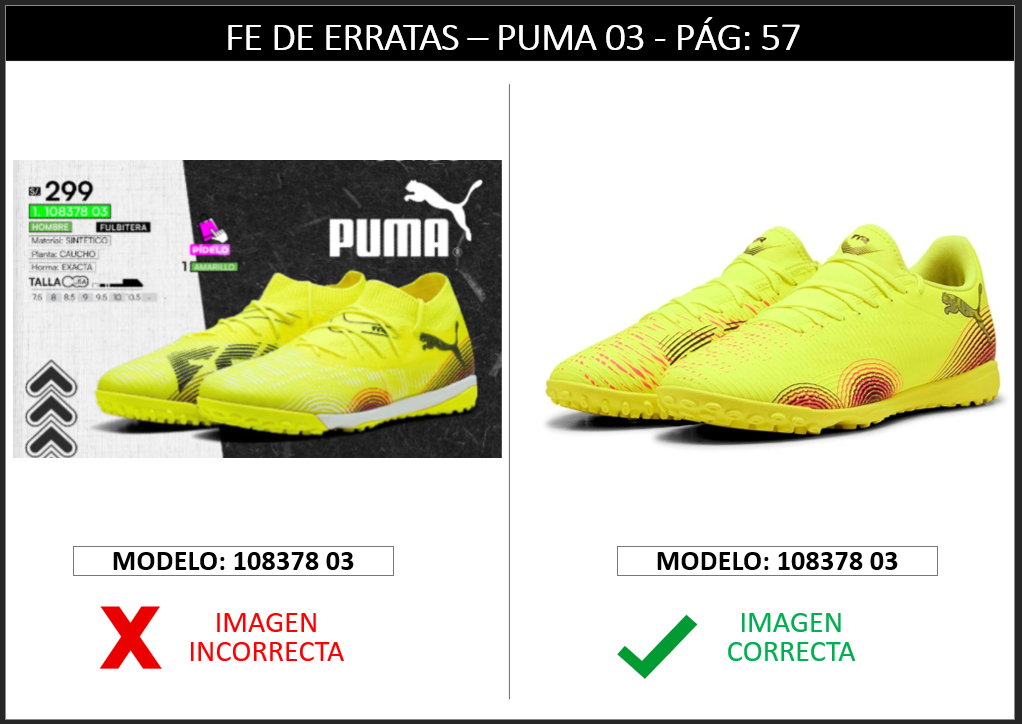 108378 03 || PUMA 03 || FE DE ERRATAS || IMAGEN INCORRECTA SE ACLARA QUE LA IMAGEN PRESENTADA EN EL CATÁLOGO PUMA 03 ES INCORRECTA. SE ADJUNTA LA IMAGEN RESPECTIVA.