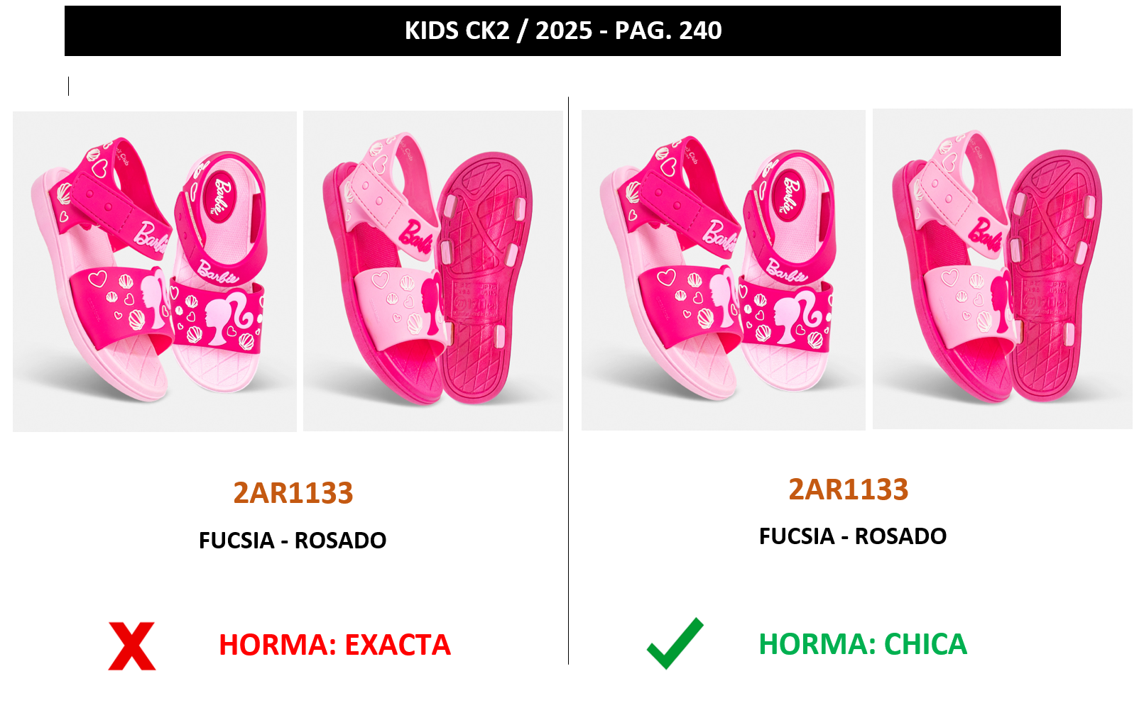 2AR1133 || FE DE ERRATAS || BARBIE Se envía el fe de erratas con la horma correcta del modelo 2ARR1133 color FUCSIA Y ROSADO.