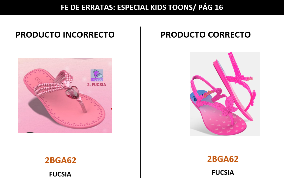 2BGA62 || FE DE ERRATAS || LICENCIA || BARBIE Se presenta el producto correcto del modelo 2BGA62 del catálogo ESPECIAL KIDS TOONS.