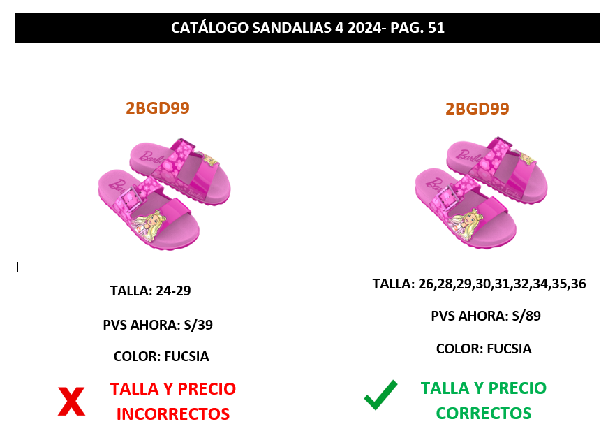 FE DE ERRATAS || BARBIE || SANDALIAS 4 - 2024 || 2BGD99 Se envía la actualización del producto (tallas y precio) 2BGD99.