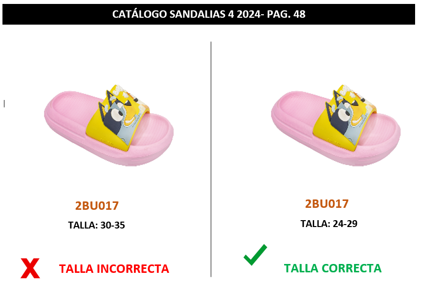 FE DE ERRATAS || BLUEY || SANDALIAS 4 - 2024 || 2BU017 Se envía la actualización del producto (tallas) 2BU017.