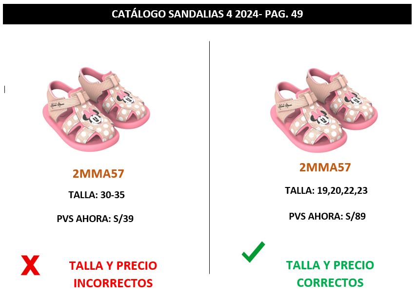 FE DE ERRATAS || MINNIE || SANDALIAS 4 - 2024 || 2MMA57 Se envía la actualización del producto (tallas y precio) 2MMA57.