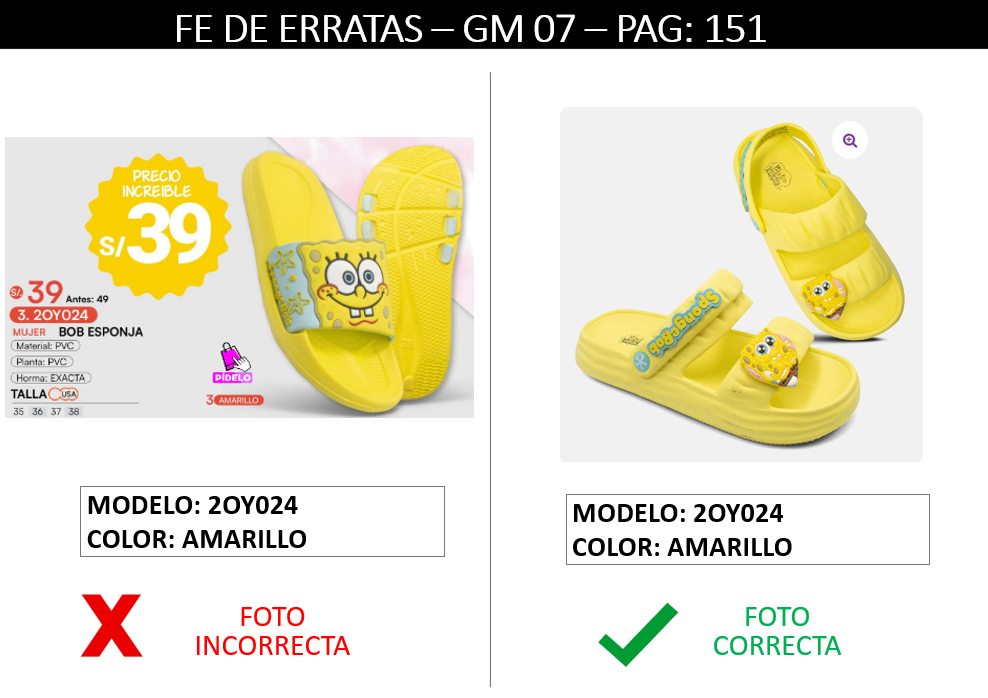 2OY024 || GM 07 || FE DE ERRATAS Se envía Fe de erratas del modelo BOBO SPONJA 2OY024 en color amarillo