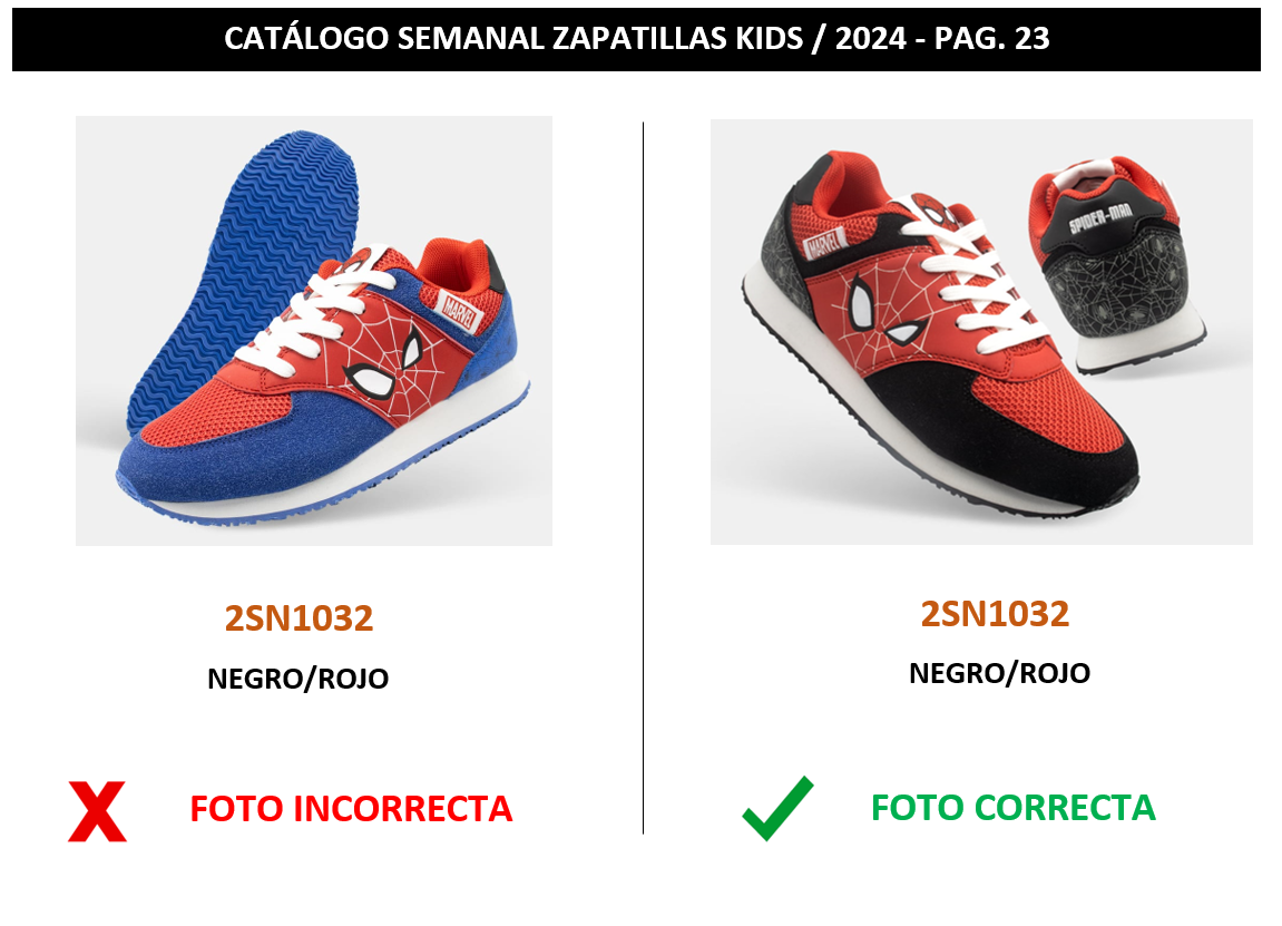 2SN1032 || SEMANAL ZAPATILLAS KIDS || FE DE ERRATAS Se adjunta el Fe de erratas indicando la foto correcta del modelo SPIDER MAN 2SN1032 color NEGRO/ROJO