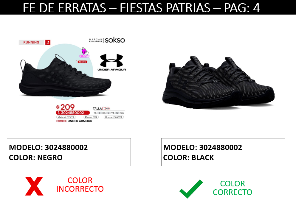 3024880002 || FIESTAS PATRIAS || FE DE ERRATAS Se adjunta Fe de erratas por error de color del modelo 3024880002 . El color correcto es BLACK