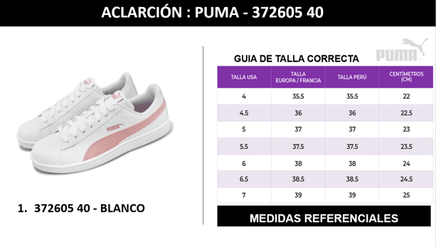 372605 40 || CD 01 || ACLARACION SE adjunta la guía de tallas correcta del modelo 372605 40 en color BLANCO.