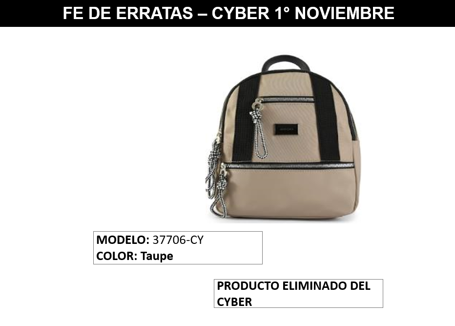 37706-CY || CYBER POWER SOKSO || FE DE ERRATAS Por no cumplir con la calidad requerida, el modelo 37706-CY fue cancelado del cyber