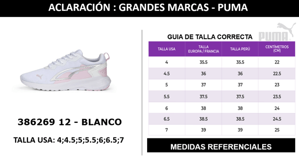386269 12 || GUIA DE TALLAS || ACLARACION Se adjunta la guía de tallas de los modelos PUMA 386269 12 en color BLANCO .