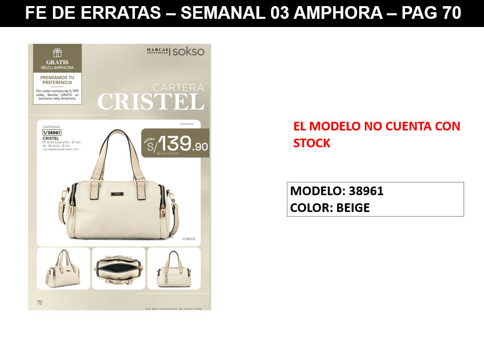EL MODELO 38961 YA NO CUENTA CON STOCK