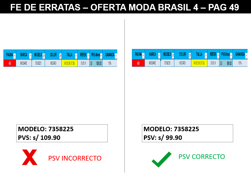7358225 || OFERTA MODA BRASIL 4 || FE DE ERRATAS Se actualiza el precio del modelo 7358225 en el listado de precios.