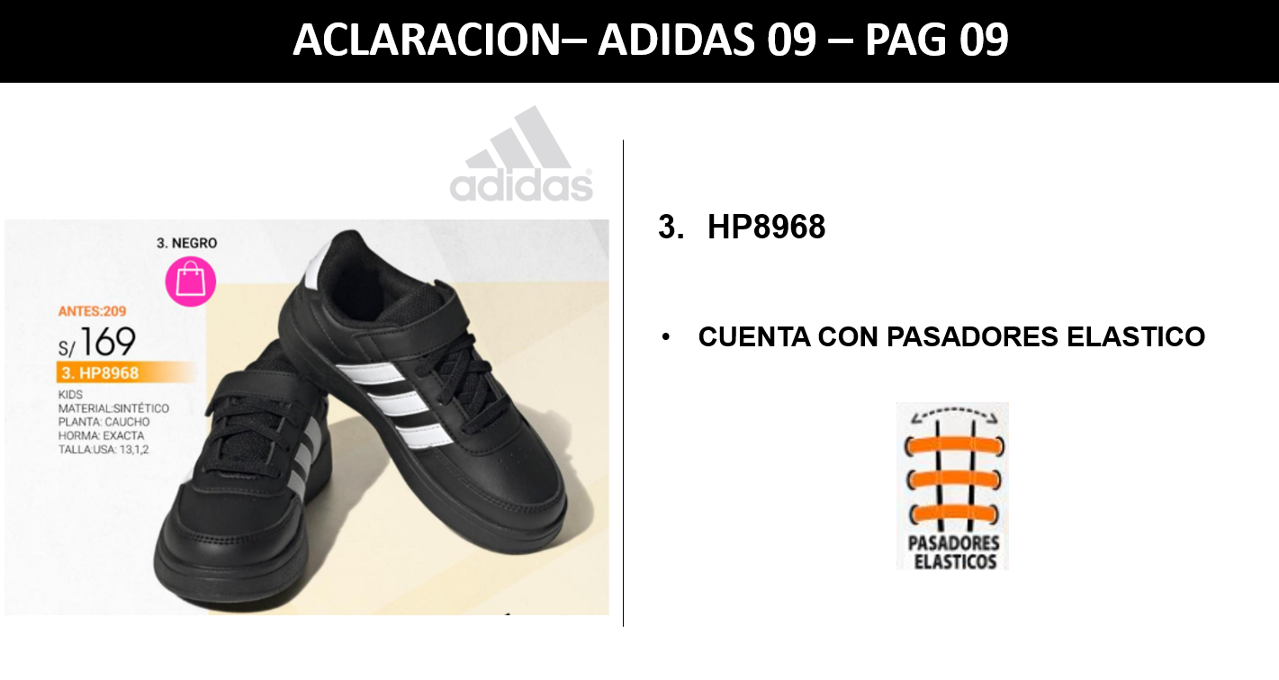 Se adjunta aclaración del modelo ADIDAS HP8968 en color negro .