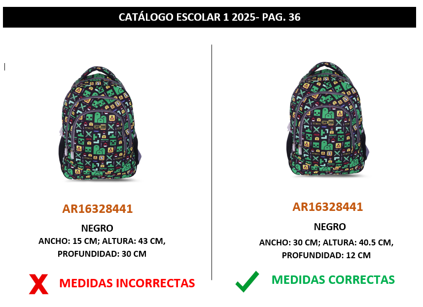 AR16328441 || FE DE ERRATAS || ARTESCO || ESCOLAR 1 - 2025 Se envía la actualización del producto (medidas correctas) AR16328441 .