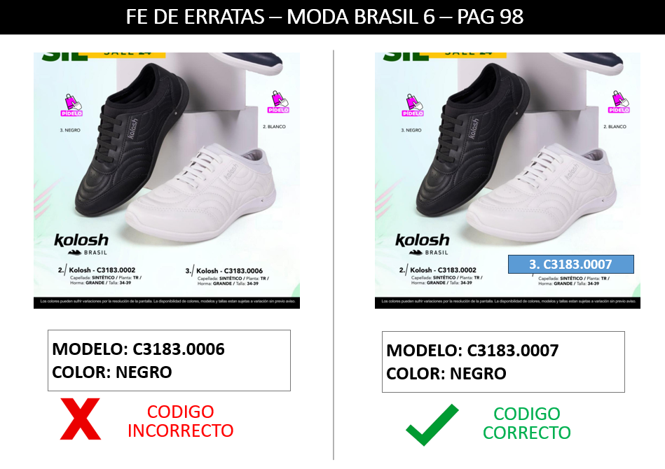 C3183.0006 || MODA BRASIL 6 || FE DE ERRATAS Se adjunta el código correcto del color NEGRO en la pagina 98.