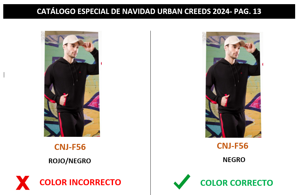 CNJ-F56 || ESP.NAVIDAD URBAN CREEDS || FE DE ERRATAS Se realiza el siguiente fe de erratas debido a una corrección de COLOR del modelo CNJ-F56 en el catálogo.