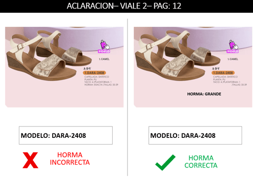 DARA-2408 || VIALE 2 || ACLARACION Se adjunta aclaración del modelo DARA-2408 con respecto a su horma, la cual es GRANDE.