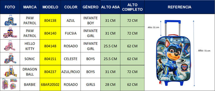 Se envía la siguiente aclaración de los accesorios escolar que llevan asa.