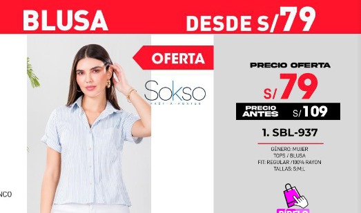 FE DE ERRATAS | SBL-937 | SOKSO| OFERTAS 6 Error de color SOKSO - OFERTAS 6 Se indica que hubo un error en el color de la prenda del catálogo Ofertas 6 del modelo SBL-937. El color correcto es blanco. Color correcto: Blanco
