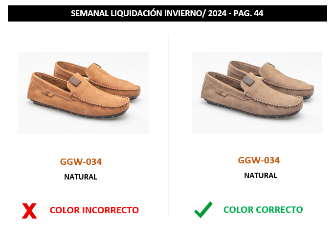 GGW-034 || SEMANAL LIQUIDACIÓN INVIERNO || FE DE ERRATAS Se adjunta el Fe de erratas indicando el color correcto del modelo AMADEO ASTO GGW-034 color NATURAL.