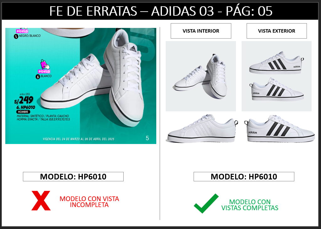 HP6010 || ADIDAS 03 || FE DE ERRATAS || VISTAS INCOMPLETAS EN CATÁLOGO SE ADJUNTAN IMÁGENES CON LAS VISTAS COMPLETAS DEL PRODUCTO.