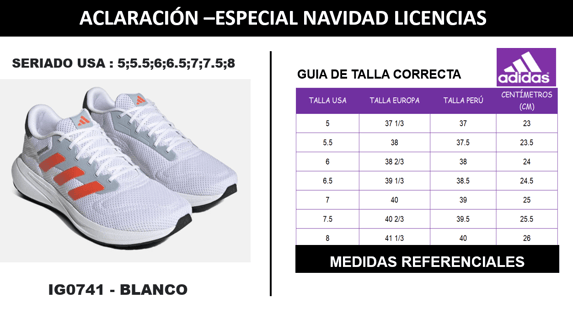 IG0741 || LICENCIAS NAVIDAD || ACLARACION Se adjunta la Guía de tallas correcta del modelo Adidas IG0741 en color blanco para damas .