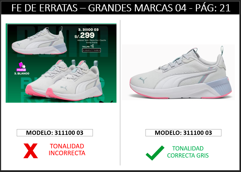 311100 03 || GRANDES MARCAS 04 || FE DE ERRATAS || TONALIDAD SE ACLARA QUE EL COLOR DEL MODELO 311100 03 BLANCO EN REALIDAD PRESENTA UNA TONALIDAD GRIS CLARO.