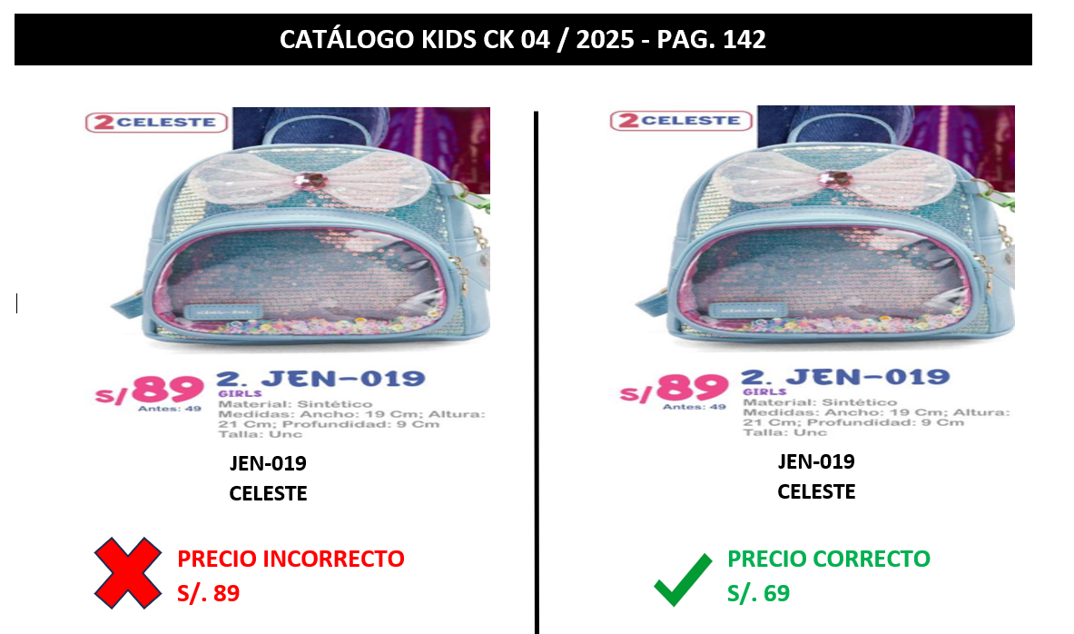JEN-019 || KIDS CK4 || FE DE ERRATAS || CORRECCIÓN DE PRECIO SE CORRIGE EL PRECIO DEL MODELO JEN-019 COLOR CELESTE, DE 89 A 69 SOLES.