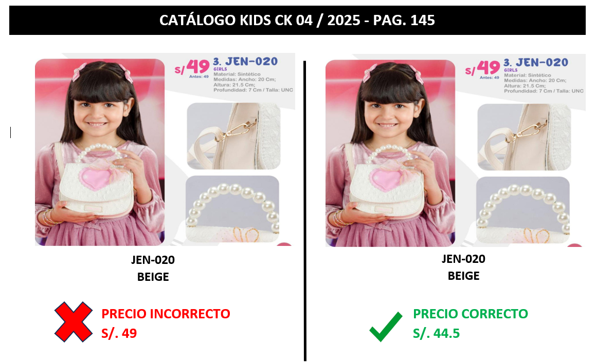 JEN-020 || KIDS CK4 || FE DE ERRATAS || CORRECCIÓN DE PRECIO SE CORRIGE EL PRECIO DEL MODELO JEN-020 COLOR BEIGE, DE 49 A 44.5 SOLES.