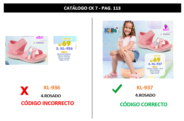 KL-937 || CK7 || FE DE ERRATAS Se adjunta el Fe de erratas indicando el CÓDIGO correcto del modelo KL-937 color ROSADO.