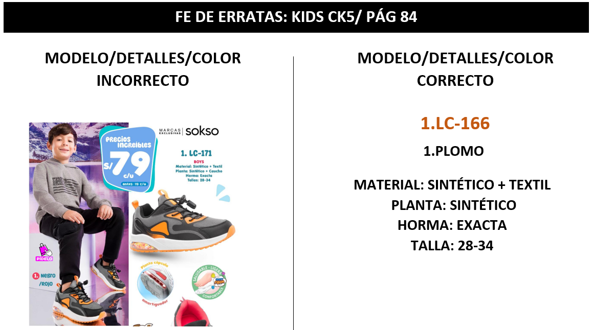 LC-166 || KIDS CK5 || FE DE ERRATAS Se presenta el FE DE ERRATAS del modelo LC-166 del color PLOMO del catálogo KIDS CK5 de marca JACK AND JACKIE.